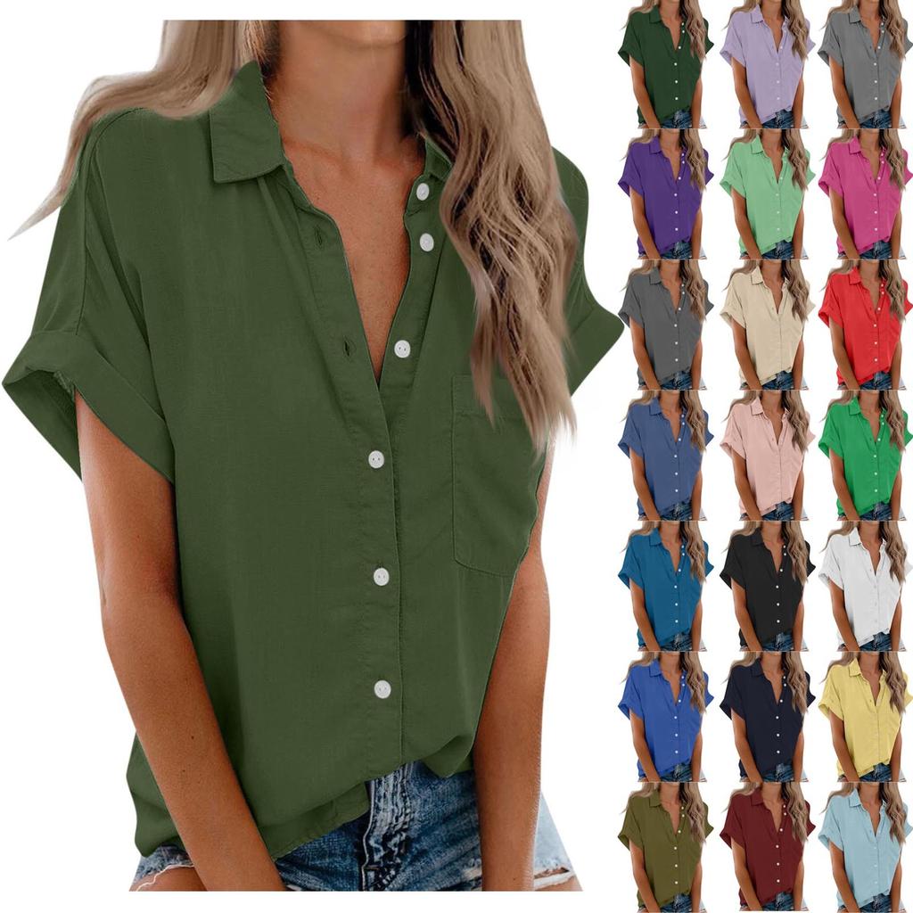 Женские рубашки с коротким рукавом, однотонные блузки на пуговицах Casua, топы с нагрудным карманом
