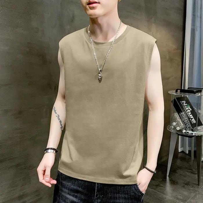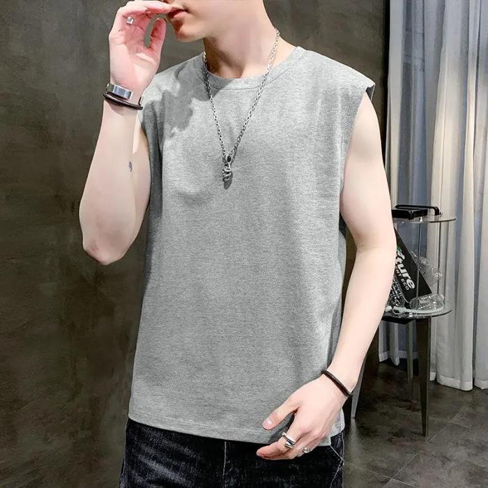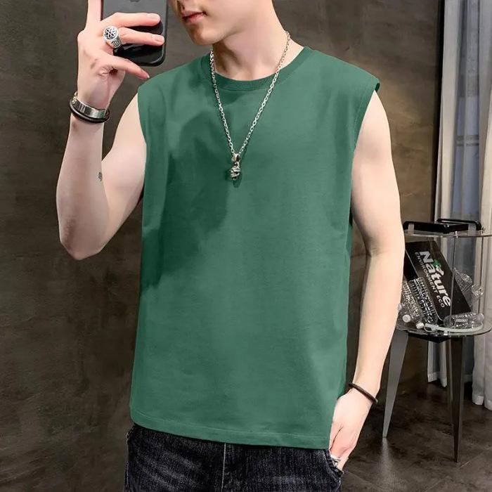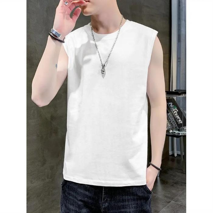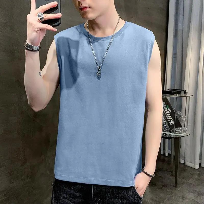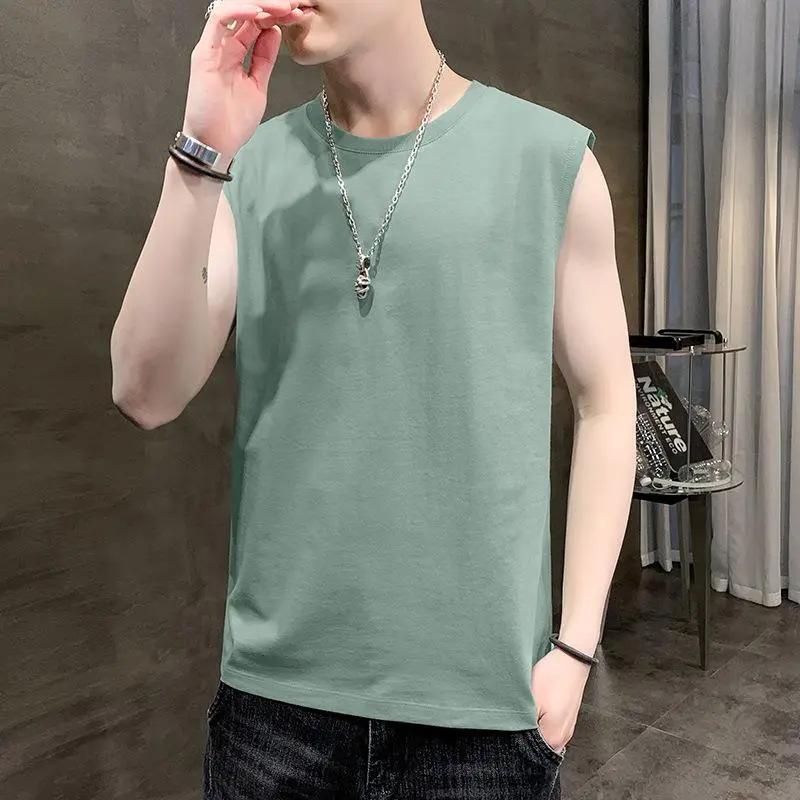 Мужская майка-топ, однотонная повседневная майка, майки, футболки без рукавов с круглым вырезом, летние пляжные топы