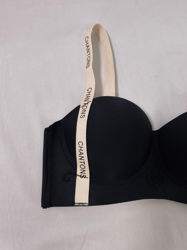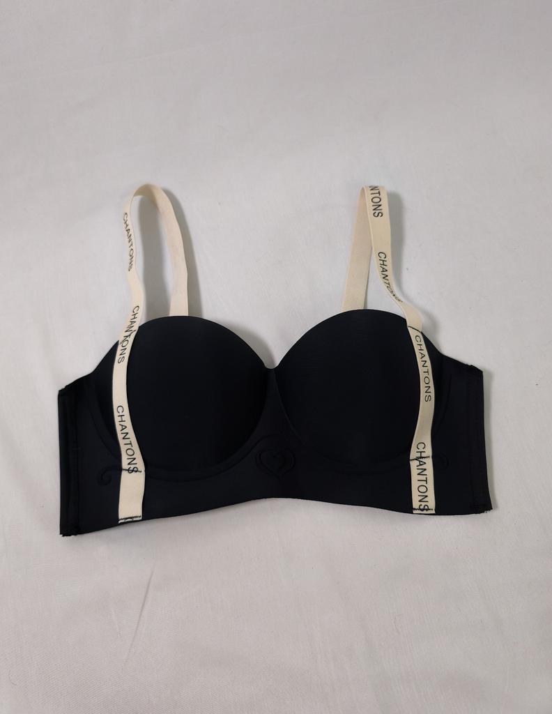 Черный бюстгальтер-балконет с широкой эластичной лентой под грудью и на бретелях, на которых повторяется надпись "CHANTONS". 🔸На мне 36/80AB. На мой ОГ - 86 см подошел идеально. 🔸Бюстгальтер выглядит как балконет. Этот тип обычно имеет более открытую верхнюю линию чашек и хорошо поддерживает грудь снизу, создавая красивую форму декольте. 🔸Классический черный цвет делает бюстгальтер универсальным и подходящим под большинство видов одежды. 🔸Застежка стандартная на крючках. Рекомендую 👍 Ставлю ⭐ ⭐ ⭐ ⭐ ⭐ Спасибо продавцу ❤️ и Joom ❤️