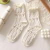 Корейские носки средней длины с розовым бантом и принтом, хлопковые носки JK Lolita с кружевными оборками для девочек, белые летние носки Kawaii Harajuku