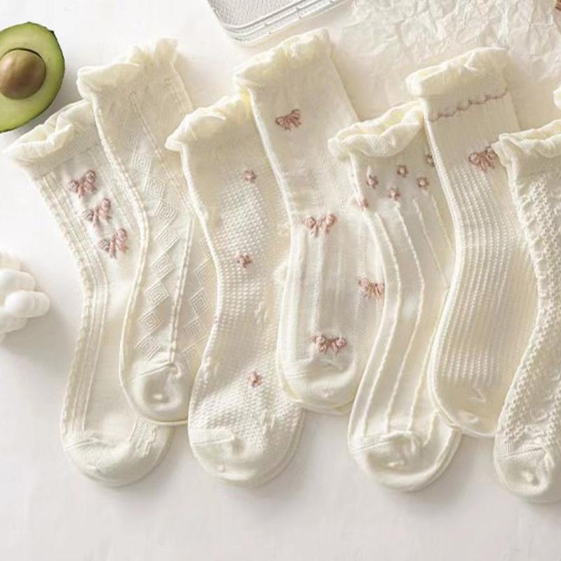 Корейские носки средней длины с розовым бантом и принтом, хлопковые носки JK Lolita с кружевными оборками для девочек, белые летние носки Kawaii Harajuku — купить товар онлайн с бесплатной доставкой по всему миру!