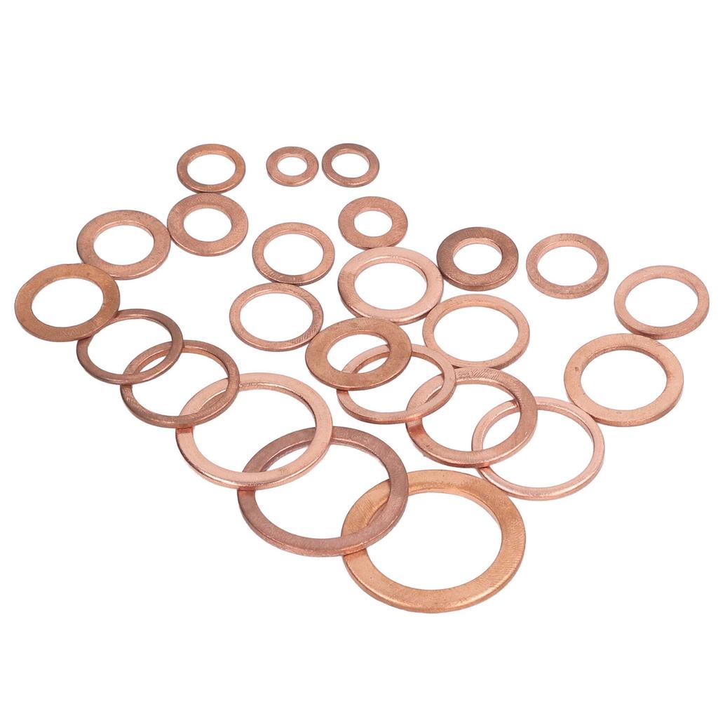 396 шт. круглых плоских шайб 24 размера, набор плоских уплотнительных шайб из красной меди с пластиковой коробкой, пинцетом