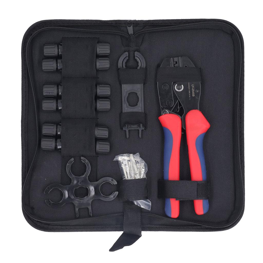 ПОЛНЫЙ НАБОР ИНСТРУМЕНТОВ: Набор инструментов для обжима солнечных батарей включает в себя 1 обжимной инструмент для солнечных кабелей, 2 гаечных ключа для солнечных батарей, 6 пар солнечных разъемов, 1 портативную сумку для удобной переноски