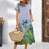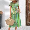 2024 Новые женские платья Элегантные летние платья миди с цветочным принтом для отдыха Женское платье с коротким рукавом Модная одежда больших размеров