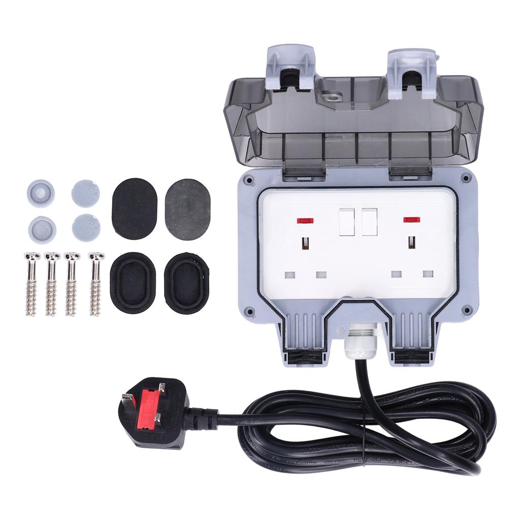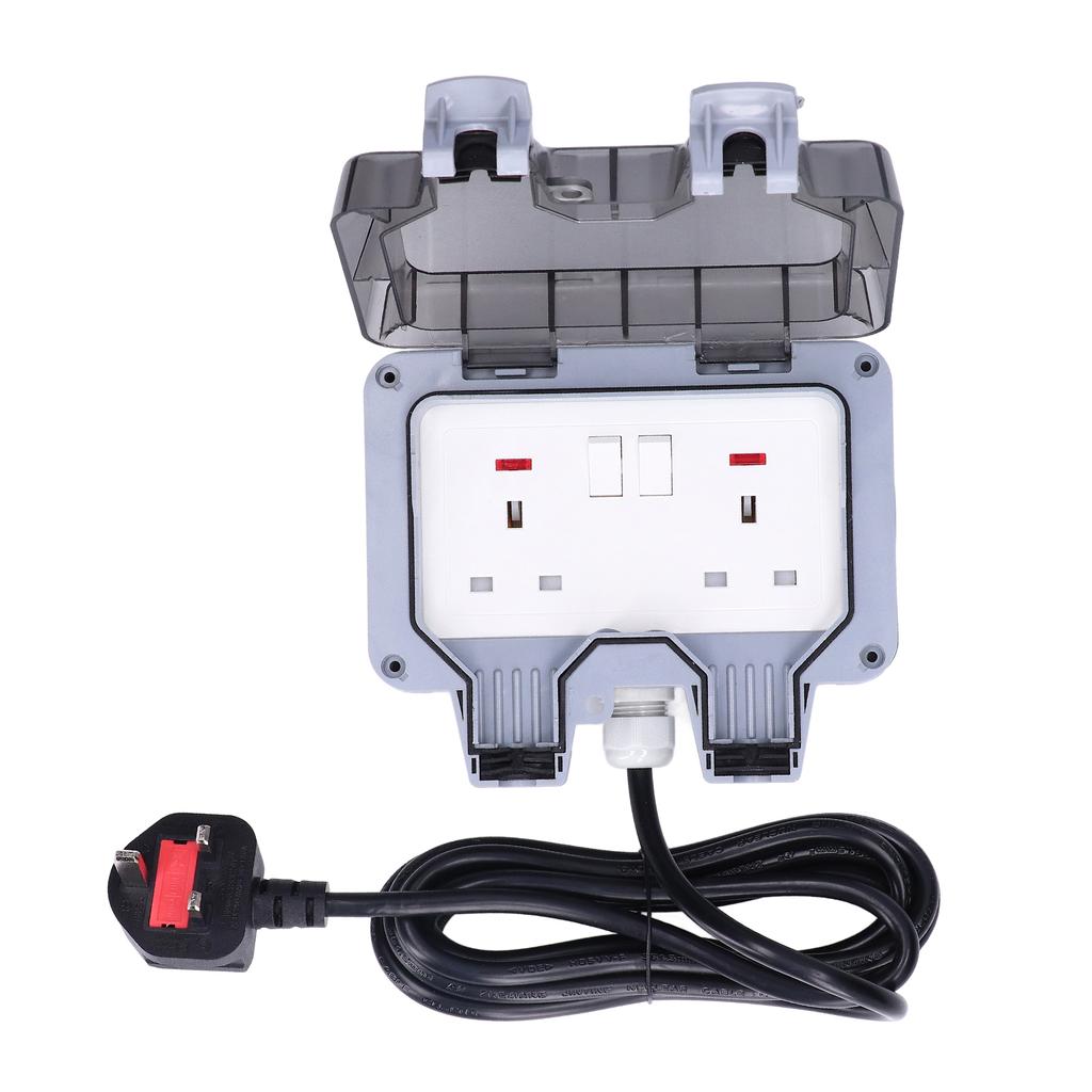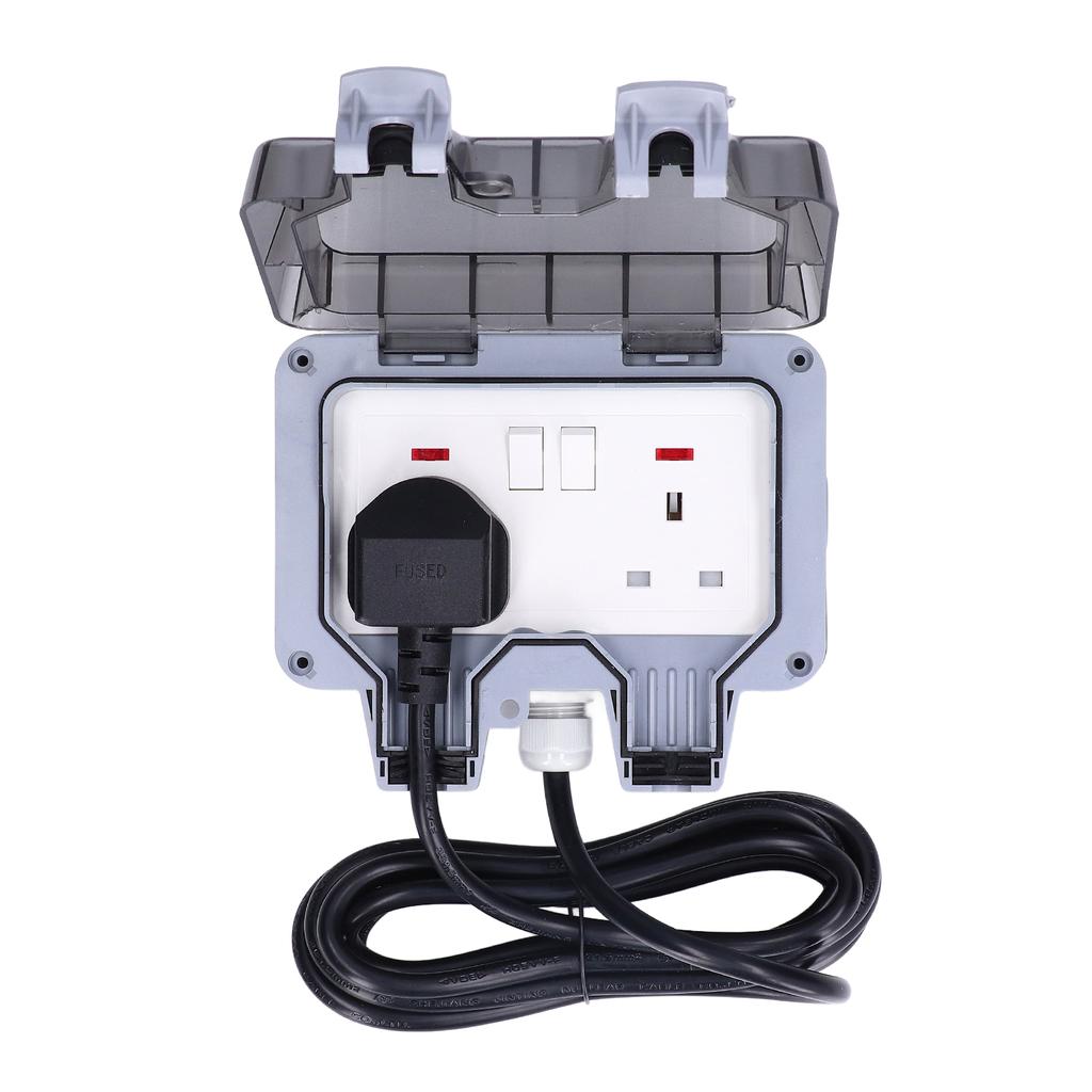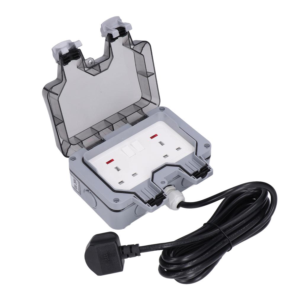 Уличная розетка Двойная коробка с силовыми розетками с кабелем IP66 Водонепроницаемая Британский стандарт 250В 13А