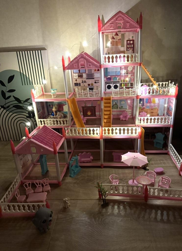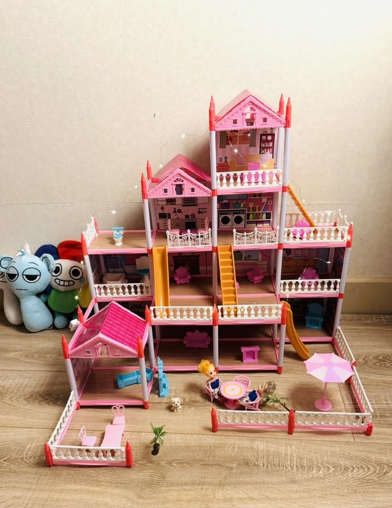 Представляю вам удивительный кукольный дом, который станет идеальным подарком для вашей девочки 💖 Этот прекрасный дом-вилла вдохновит на веселые игры и позволит развивать фантазию. Изготовленный из высококачественного пластика, данный кукольный домик не только безопасен, но и очень прочный. Внутри мебель, которая добавит уют и атмосферу в игровой процесс. Этот большой домик оснащён подсветкой, что создаёт уникальную атмосферу во время вечерних игр. Игрушка детская подходит для маленьких куколок, чтобы они могли весело проводить время вместе с вашей дочкой. Подарочный набор включает в себя всё необходимое для увлекательных приключений, и станет настоящим сюрпризом на день рождения! Не упустите шанс подарить вашему ребенку этот замечательный кукольный домик, который станет центром её игровой вселенной. Доставили за 2 недели Собрали мы его за 30 минут Восторг 💖🥰