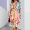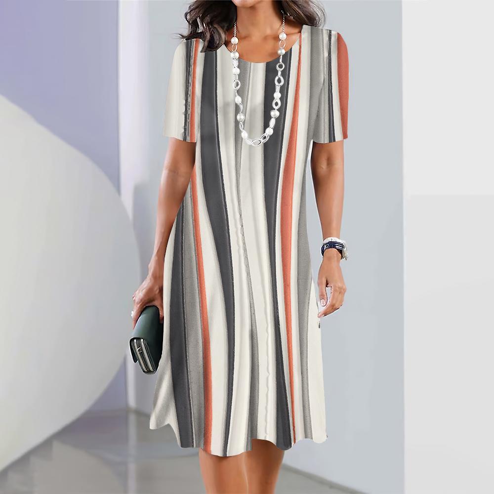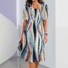 Летняя женская одежда Свободная юбка А-силуэта с короткими рукавами Стильное платье с 3D-нерегулярным принтом Женская одежда Платья с круглым воротником