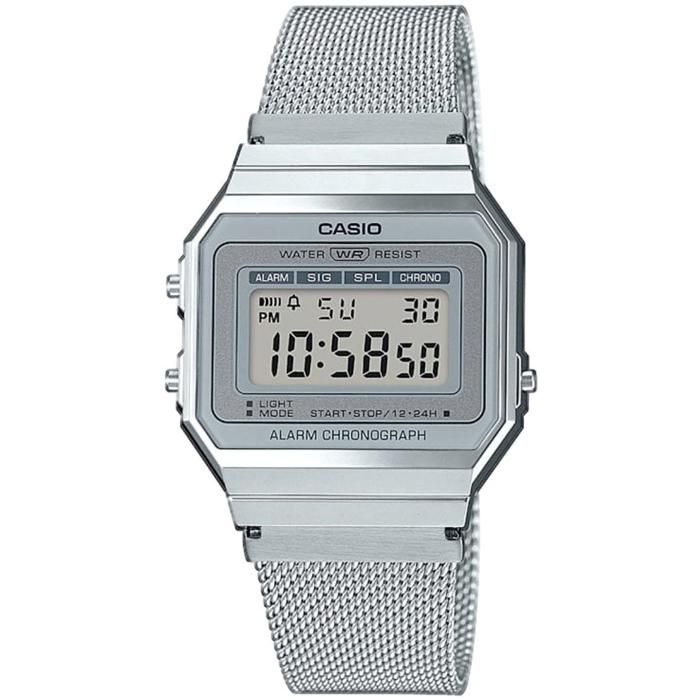 Montre Casio mixte vintage - A700WEM-7AEF - Etanche - Bracelet maille milanaise