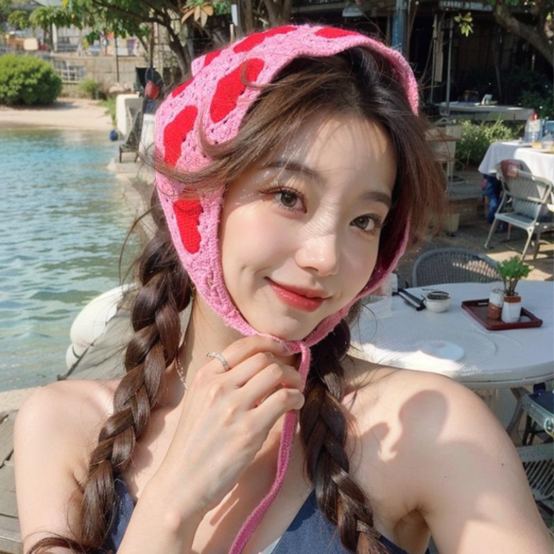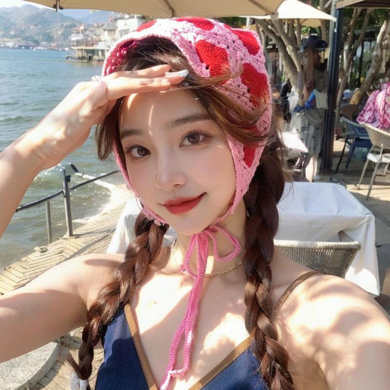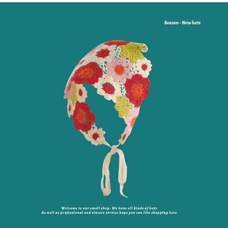 Вязаная треугольная повязка на голову во французском пасторальном стиле, повязка на голову с маленьким цветком, полотенце, ручная работа, вязаный крючком платок, шапка, весна-лето
