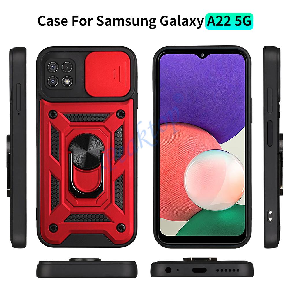 Защитный чехол для объектива камеры Slide для Samsung Galaxy A22 5G, противоударный чехол для Samsung A22 A 22 с кольцом-магнитом, подставкой Coque