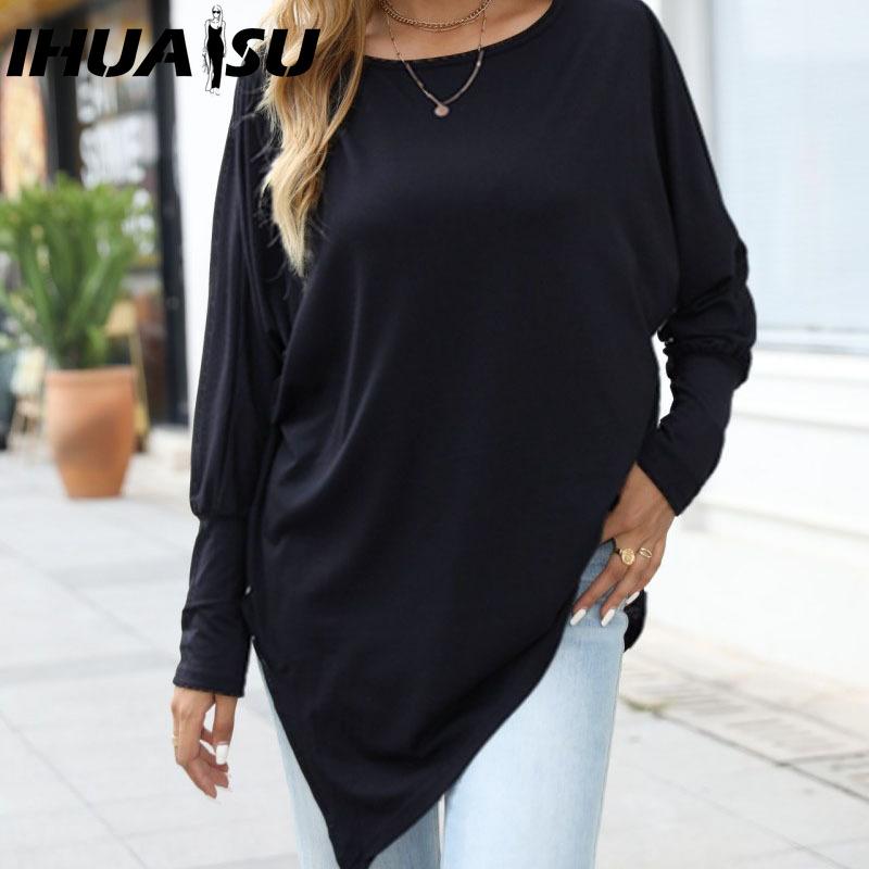 IHUASU Осенне-зимняя футболка с длинным рукавом, нерегулярного кроя, повседневная, свободная, большого размера, для полных — купить товар онлайн с бесплатной доставкой по всему миру!