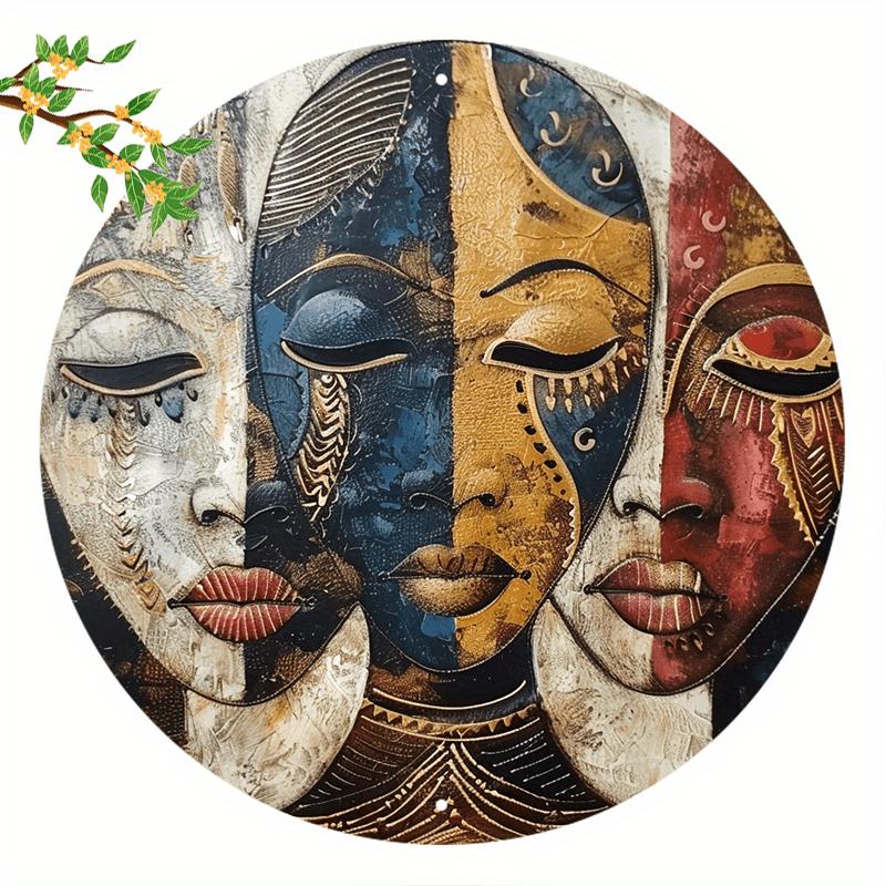 Прочная деревянная вывеска - уникальный круглый дизайн с изображением масок - идеально подходит для домашнего декора, потрясающего настенного искусства, декоративных акцентных постеров