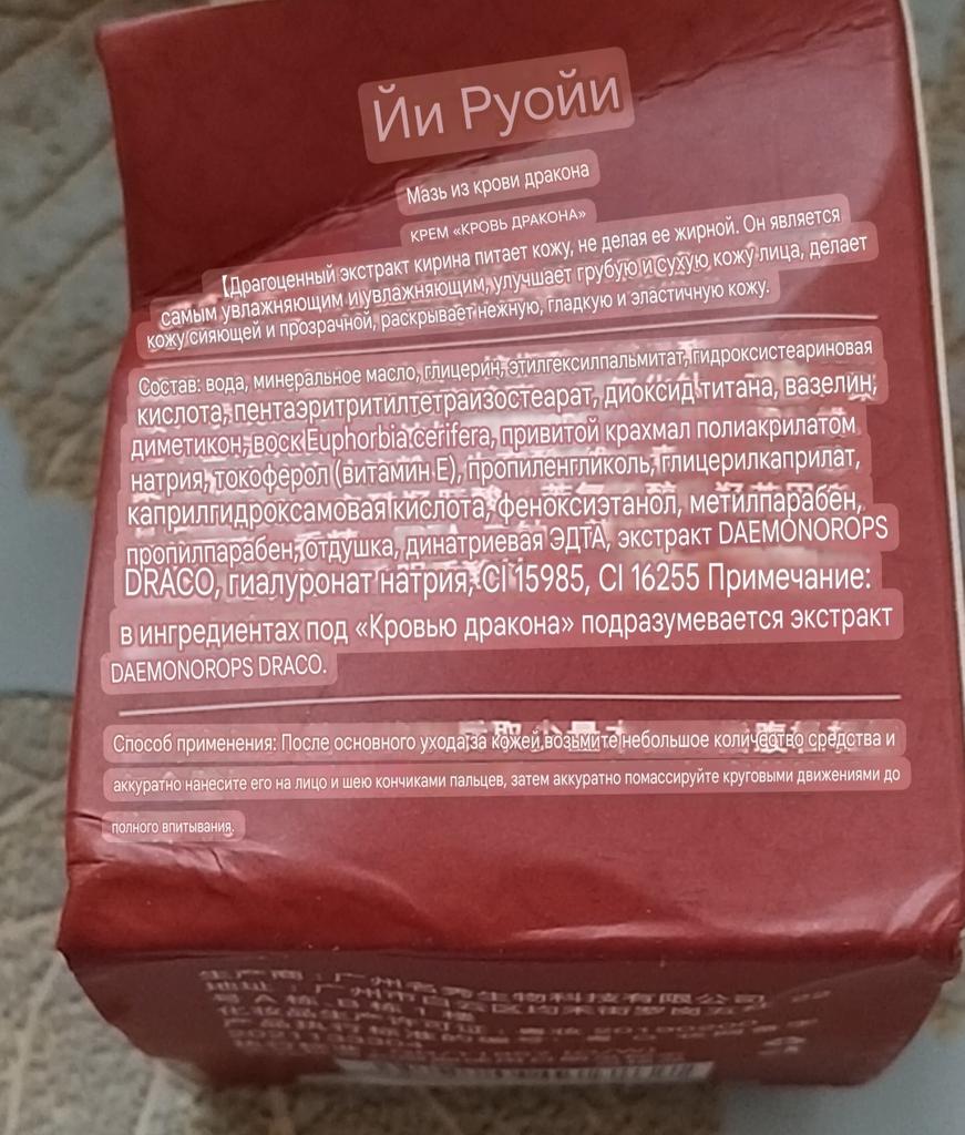 ✴️✴️✴️Крем " Кровь дракона ". Беру уже в третий раз. До этого брала для себя и товар приходил в отличном состоянии. В этот же раз сработал закон подлости 😫, взяла в подарок и вот, коробочка вся помята, за это и сняла звезду. К самому же крему претензий нет. Красивая подача, флакончик потрясающий. ✴️✴️✴️Увлажняет, питает, разглаживает мелкие морщинки, придаёт коже свежий вид и сияние. Доставка месяц в сборной посылке. Отслеживание до почтового отделения. 😊🍀. Сам крем мне очень нравится, жаль, что коробочка " пострадала "😒.