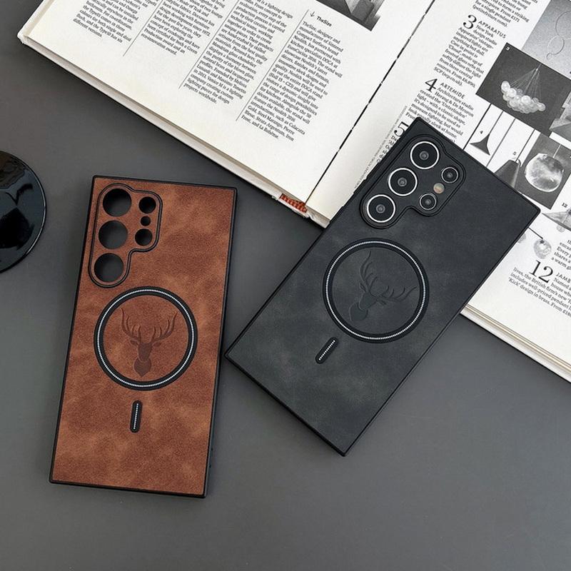 Чехол для телефона Samsung S25 Ultra S24 S23 Plus S22 из кожи с магнитным принтом оленя, тонкий матовый противоударный чехол с функцией беспроводной зарядки — купить товар онлайн с бесплатной доставкой до всему миру!