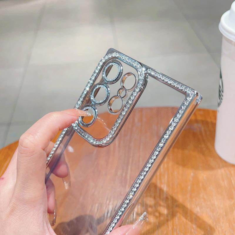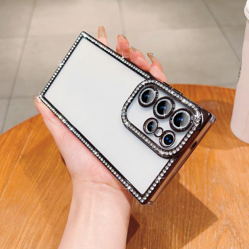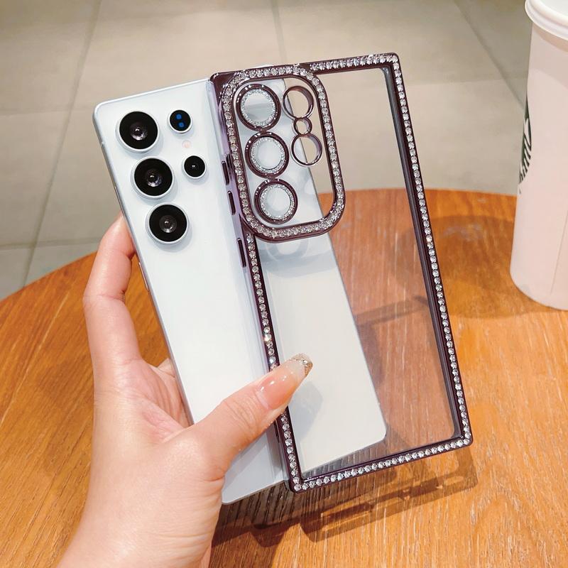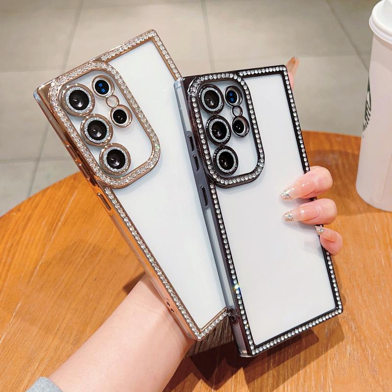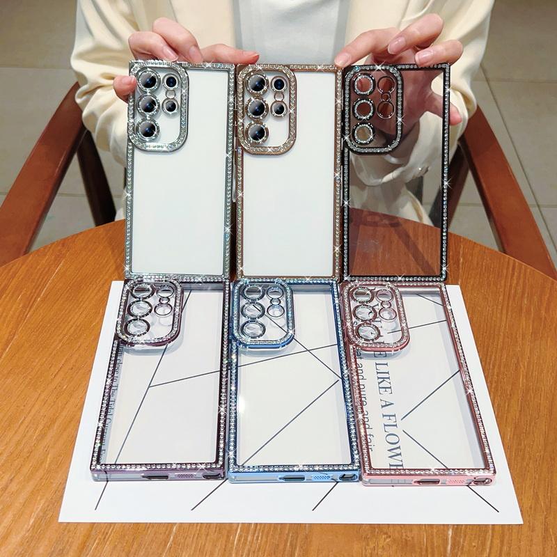 Роскошный прозрачный чехол с бриллиантовой оправой для Samsung Galaxy S25 Plus S24 Ultra, защитная пленка для объектива, противоударное покрытие, силиконовый чехол для телефона