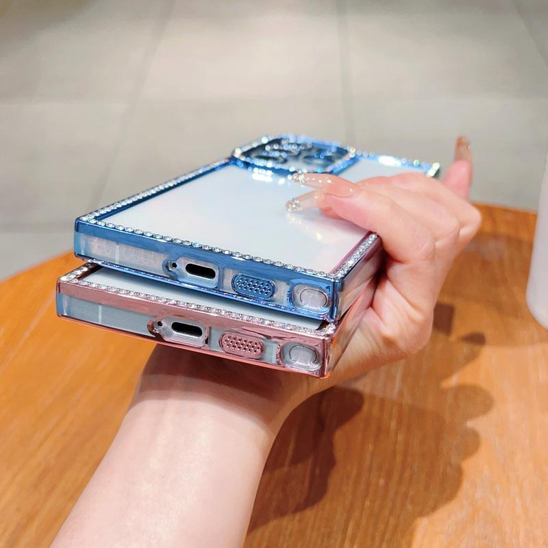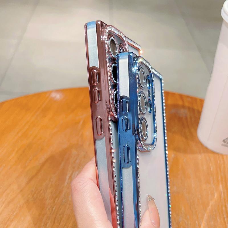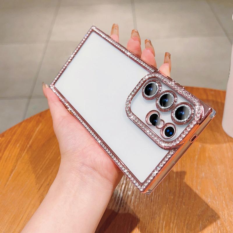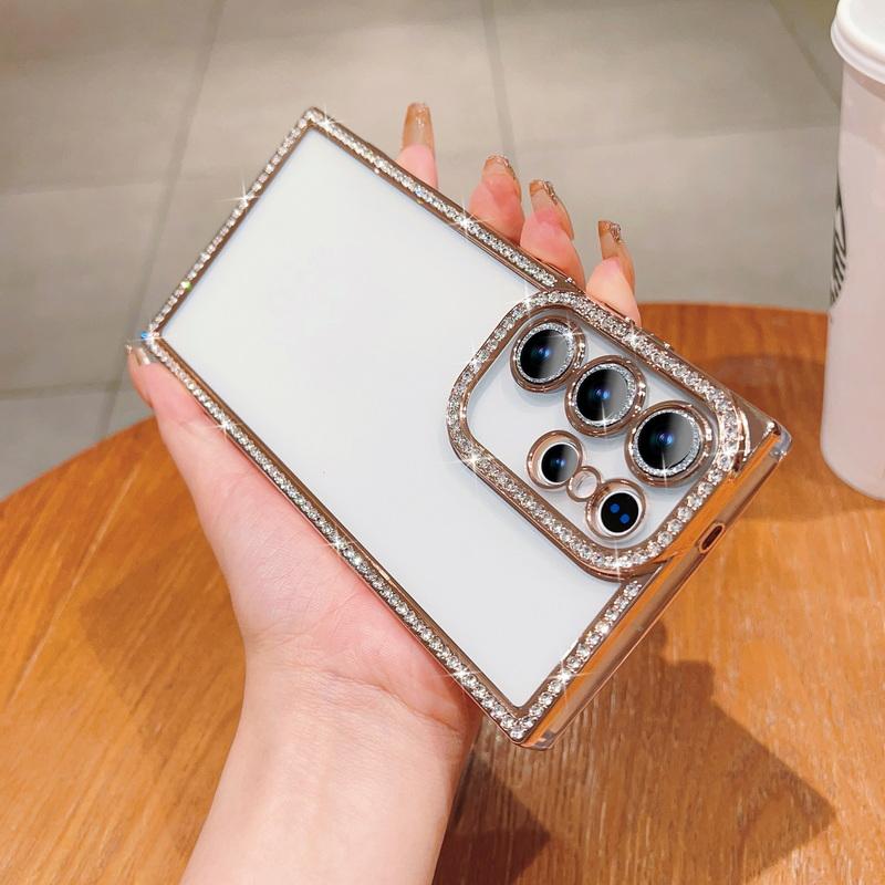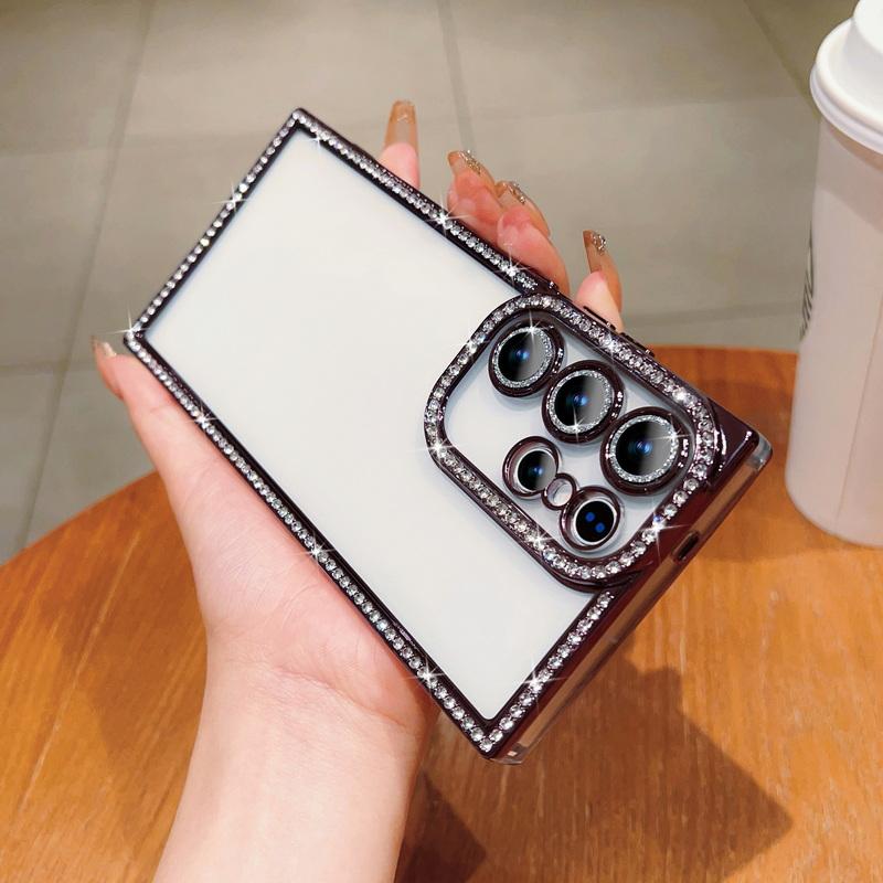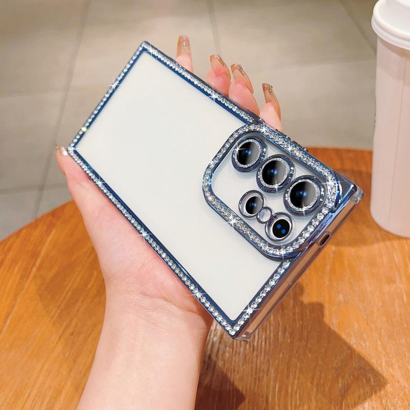Роскошный прозрачный чехол с бриллиантовой оправой для Samsung Galaxy S25 Plus S24 Ultra, защитная пленка для объектива, противоударное покрытие, силиконовый чехол для телефона