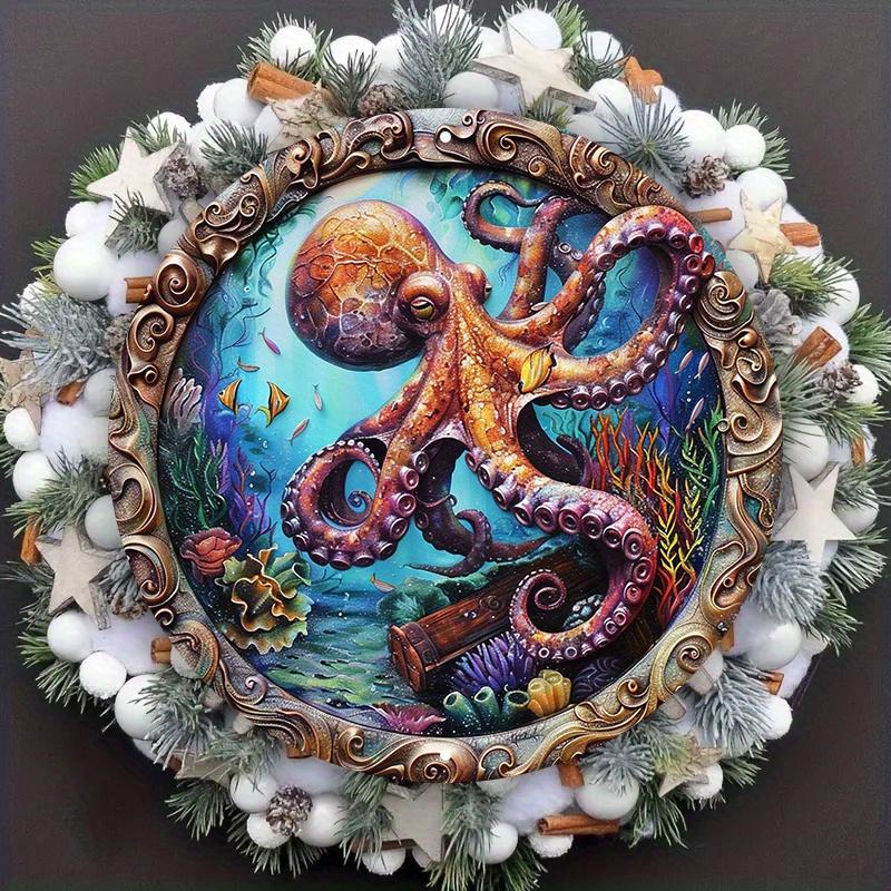Прочная деревянная табличка «Венок с осьминогом», устойчивая к царапинам, декор для помещений и улицы, идеальный подарок на День святого Валентина