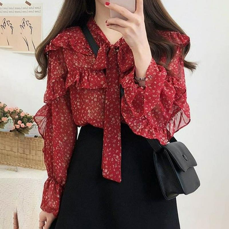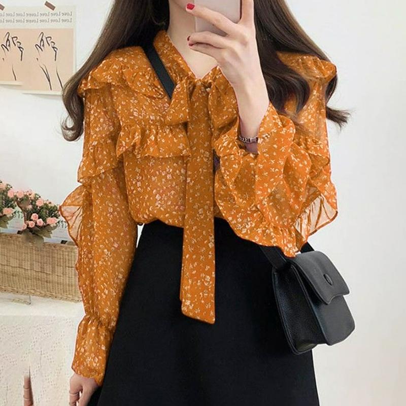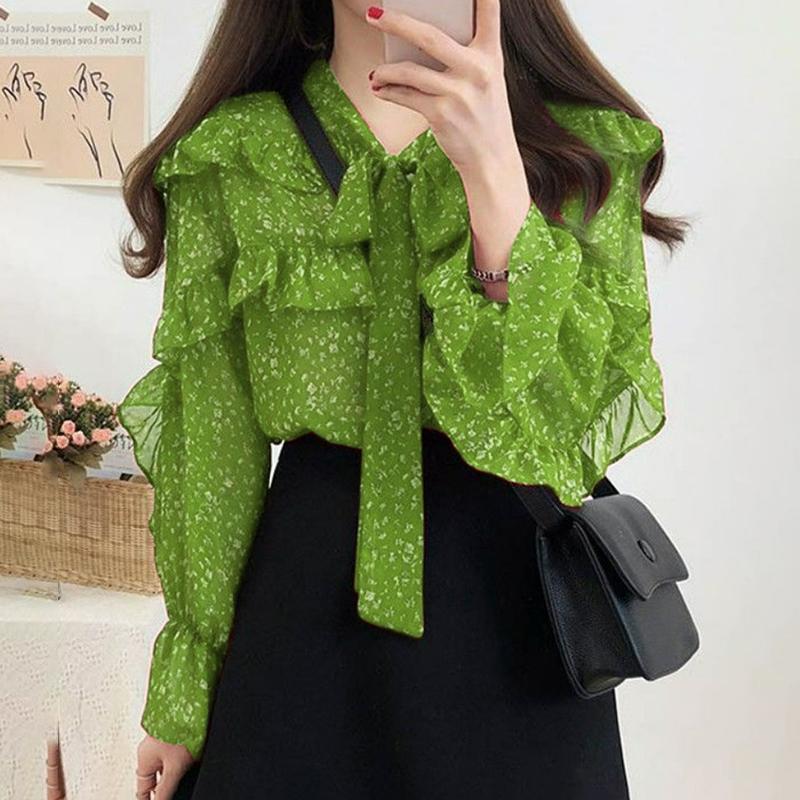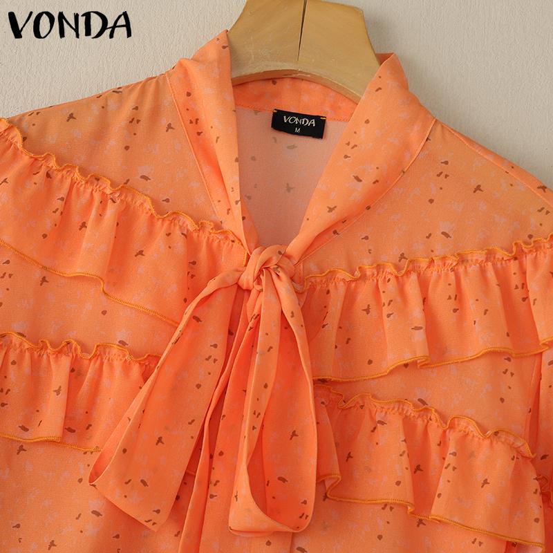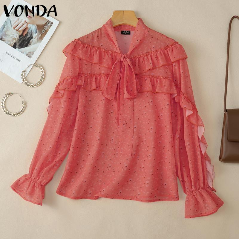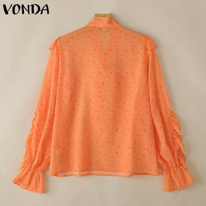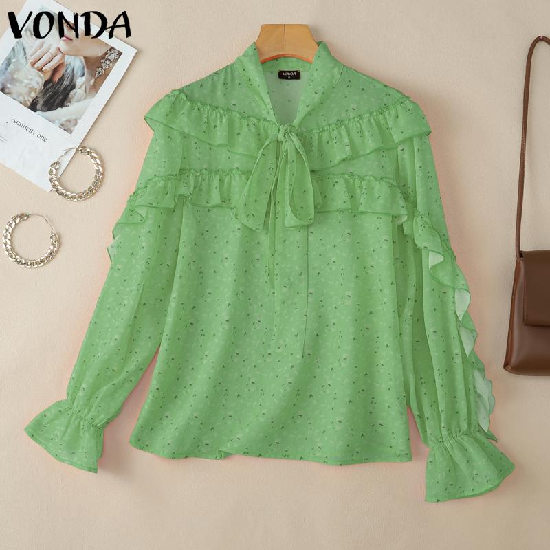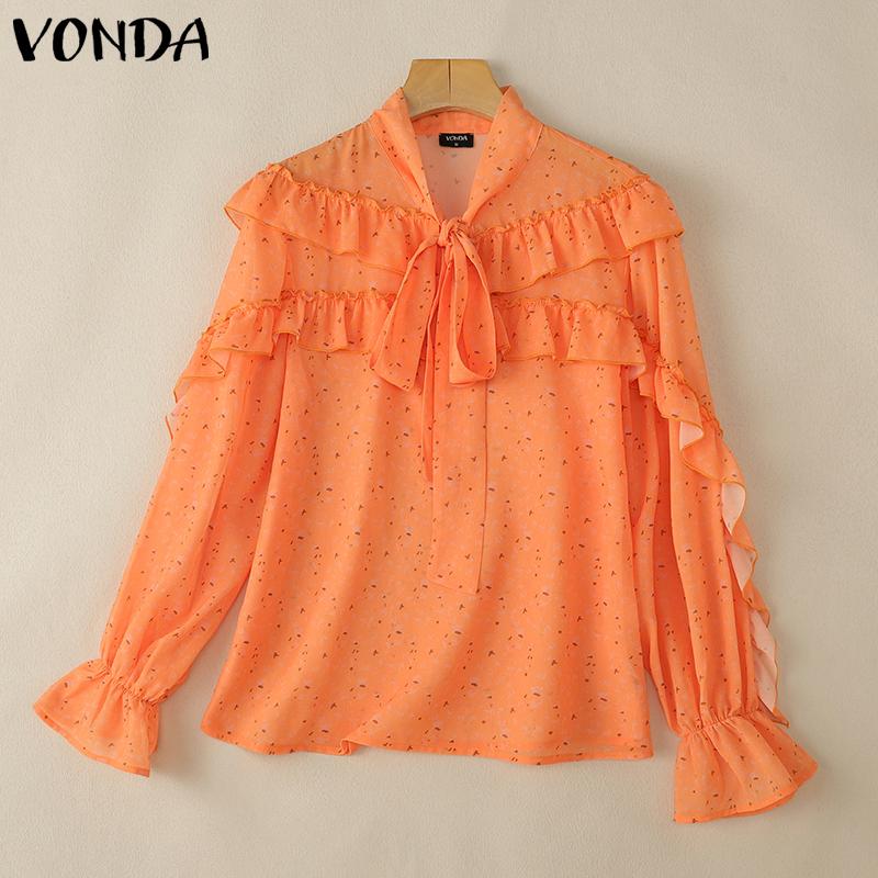 VONDA Женская полупрозрачная блузка с бантом и длинными рукавами и оборками