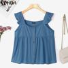 VONDA Летние женские рубашки в стиле колледжа с воротником-бабочкой и оборками на талии
