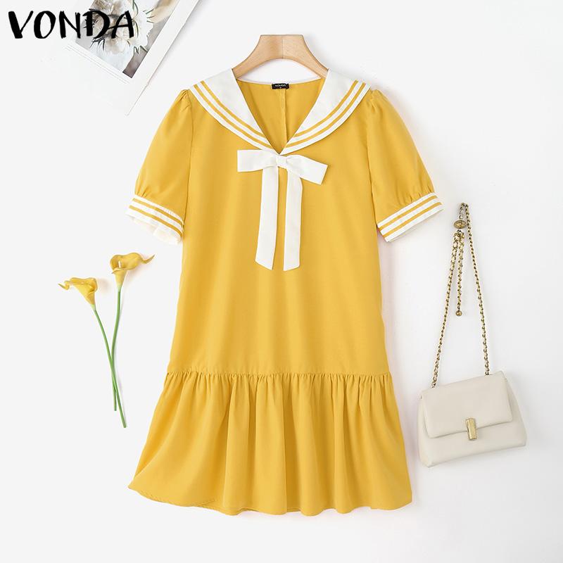 VONDA Летние женские рубашки в стиле колледжа с воротником-бабочкой и оборками по низу — купить товар онлайн с бесплатной доставкой по всему миру!