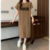 Женское платье-футболка с короткими рукавами, летнее, свободное, тонкое, прикрывающее живот, прямое, повседневное, выше колена, платье