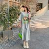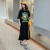 Женское повседневное платье-футболка, свободное корейское платье с коротким рукавом и мультяшным принтом для сна