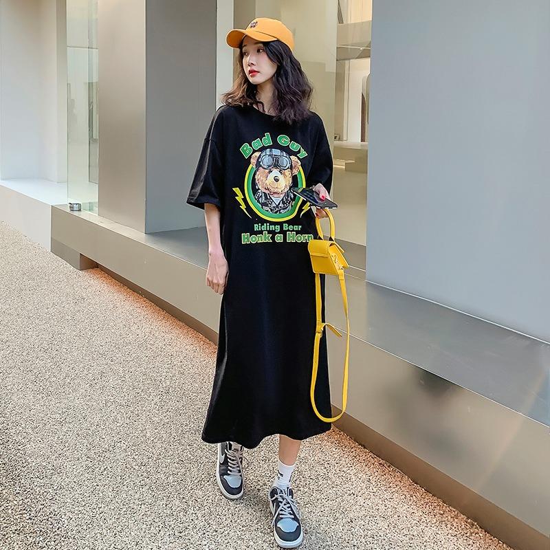 Женское повседневное платье-футболка, свободное корейское платье с коротким рукавом и мультяшным принтом для сна — купить товар онлайн с бесплатной доставкой по всему миру!