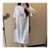 Женское летнее платье-футболка с короткими рукавами, свободное пижамное платье средней длины с разрезом