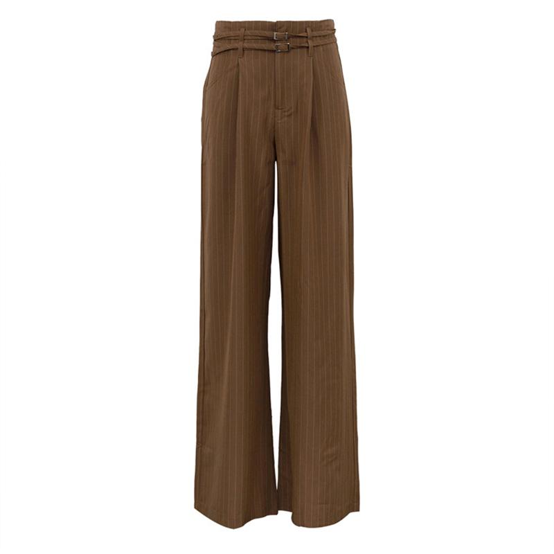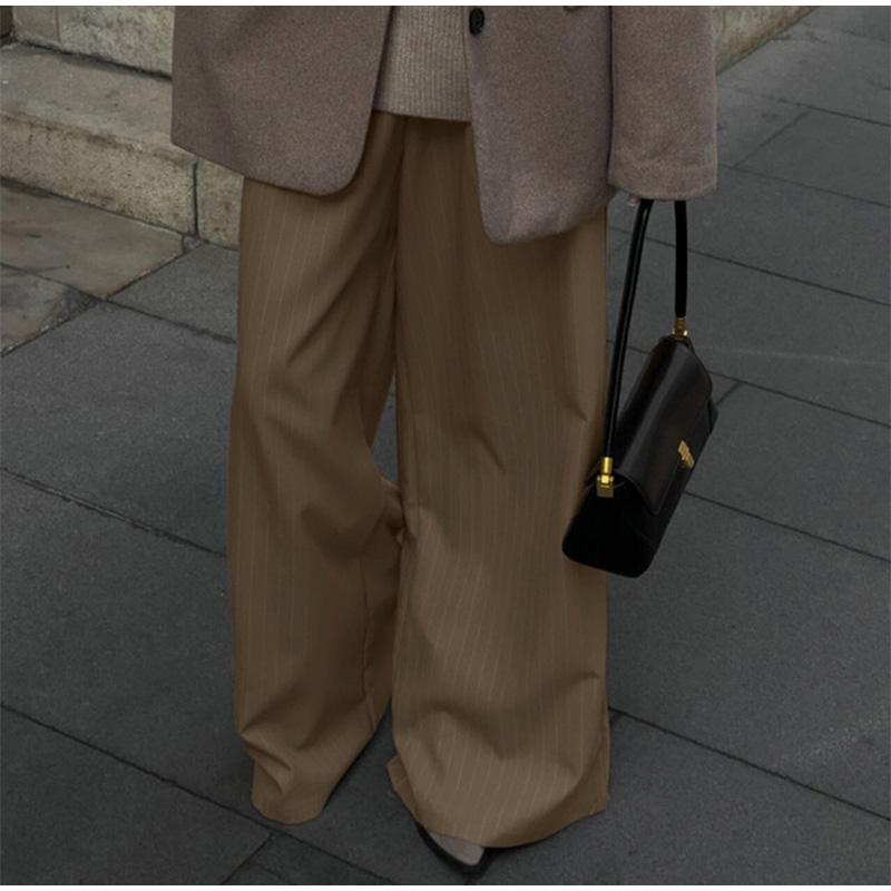 Повседневные широкие брюки в полоску в стиле ретро, весенне-летняя женская мода для поездок на работу, универсальные свободные прямые брюки с высокой талией