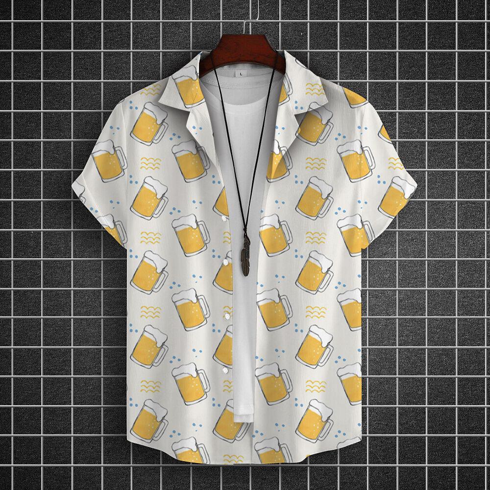 Мужская гавайская рубашка с 3D-принтом, усиленный пивной узор, модная пуговица, короткий рукав, воротник, уличная одежда, гавайская рубашка для мужчин