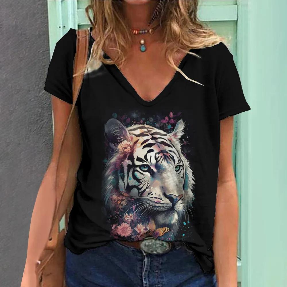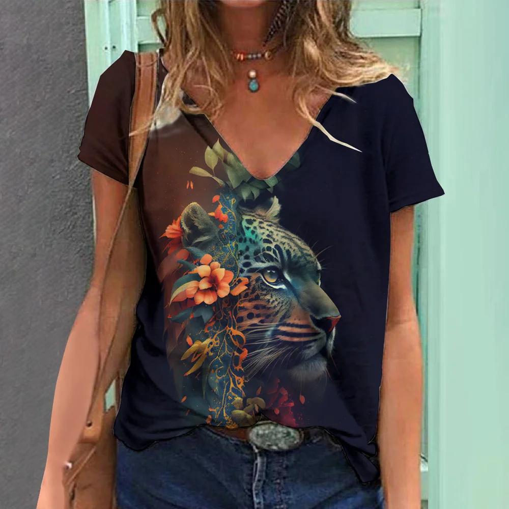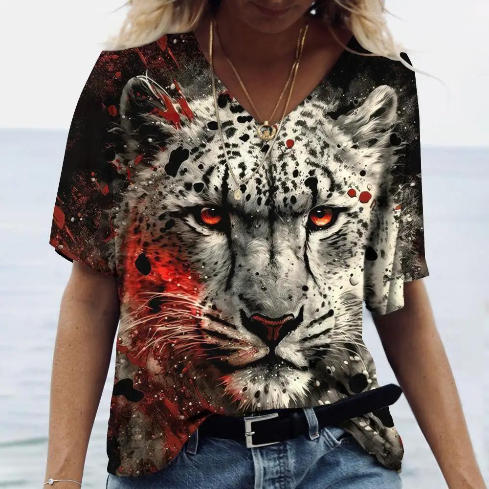 Футболки с 3D принтом животного, тигра и леопарда, женские повседневные модные уличные футболки с короткими рукавами и v-образным вырезом, футболки в стиле Харадзюку, топы, одежда