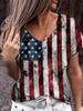 Американский флаг 3D Принт Футболка Женская мода V-образный вырез Футболки с коротким рукавом Футболки Свободные повседневные футболки Винтажные майки Флаг США