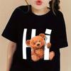 Креативные футболки с графическим принтом «Мультяшный кот и медведь», удобная футболка с круглым вырезом и коротким рукавом, детская одежда, летние топы для девочек