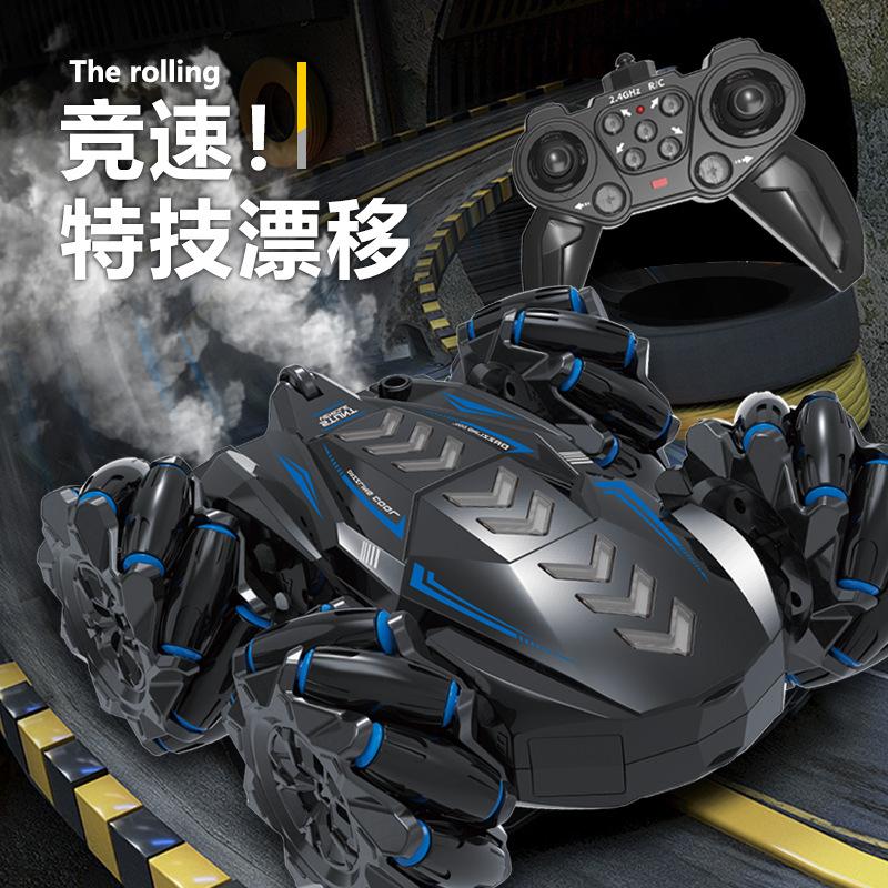 2.4G двухсторонний автомобиль с дистанционным управлением, долговечный трюковой автомобиль для опрокидывания, зарядка светящегося автомобиля, детская игрушечная машина