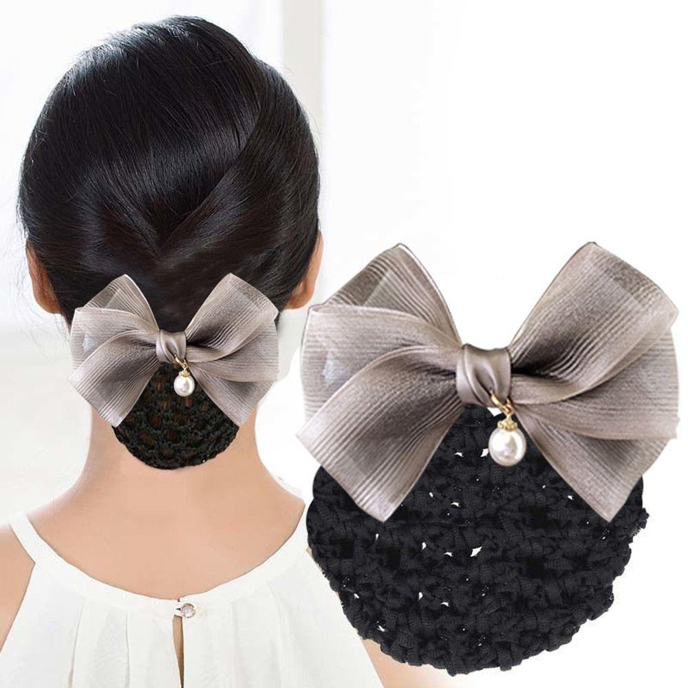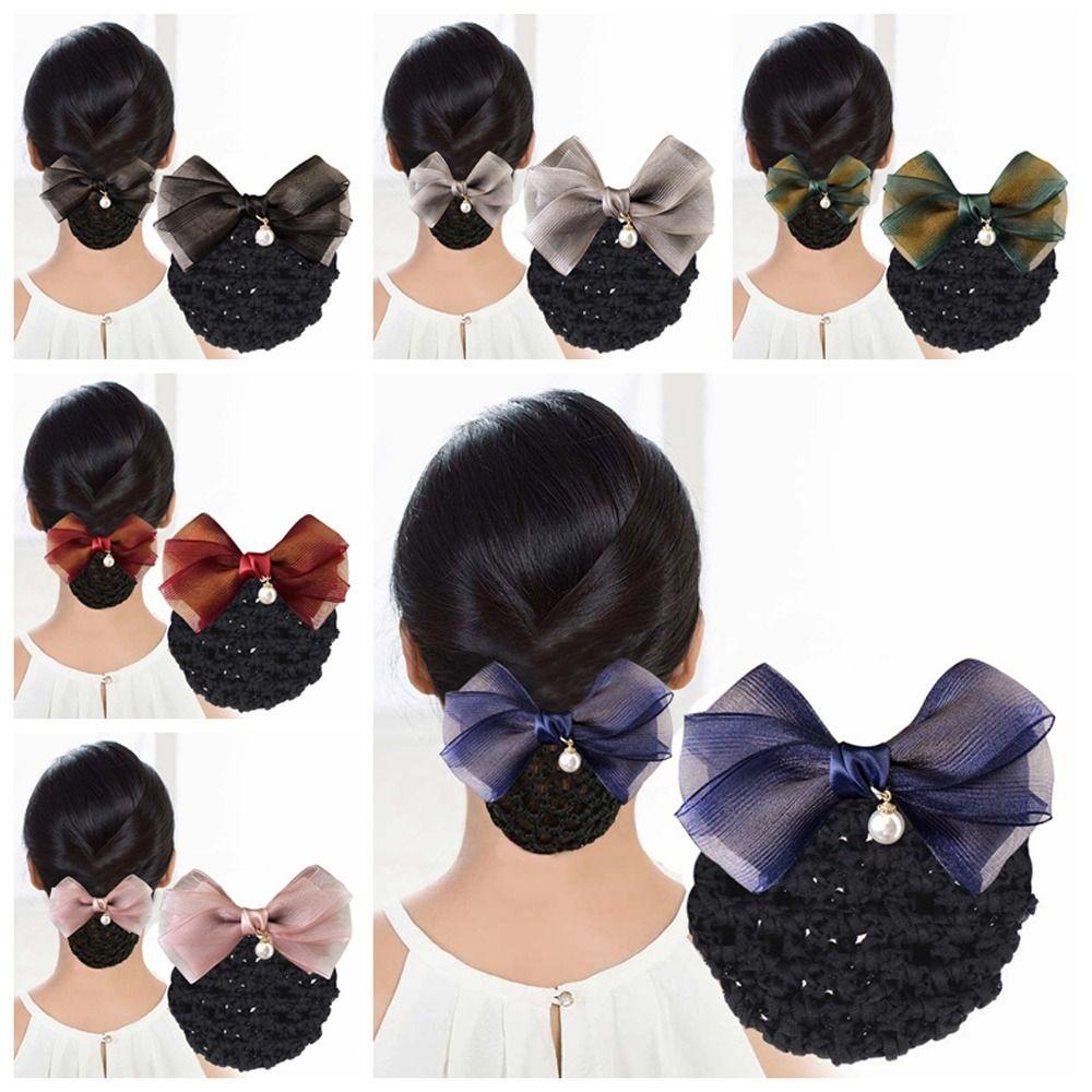 Hotel Attendant Hair Clip Bowknot Bun Snood Bowknot Hairgrips Net Cover Nurses/Flight Attendant