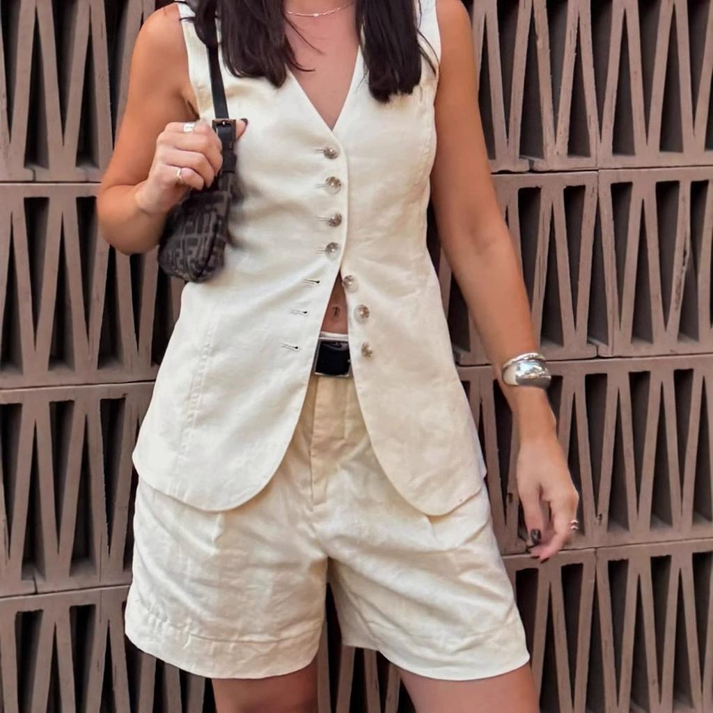 Хлопок и лен жилет шорты костюм летний пригородный жилет + шорты костюм повседневный женский костюм