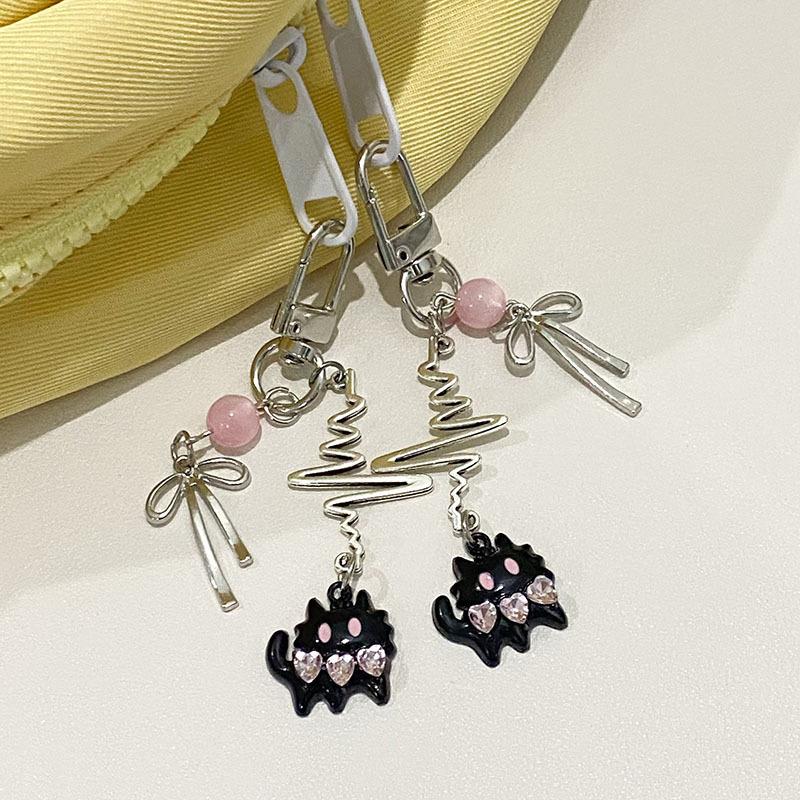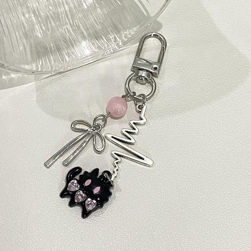 Y2K стильный черный кот бант брелок Ins стиль бисерный брелок сумка кулон украшение наушники камера подвеска автомобильный ключ аксессуары