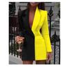 Модный блейзер с цветными блоками в стиле пэчворк, женский костюм с длинным рукавом и v-образным вырезом, платье, весенне-осеннее женское пальто на пуговицах
