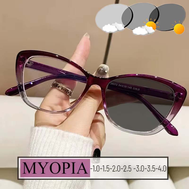 Фотохромные очки для близорукости «кошачий глаз» для женщин, защитные от ультрафиолета, очки для близорукости, изменяющие цвет, диоптрии до -4,0