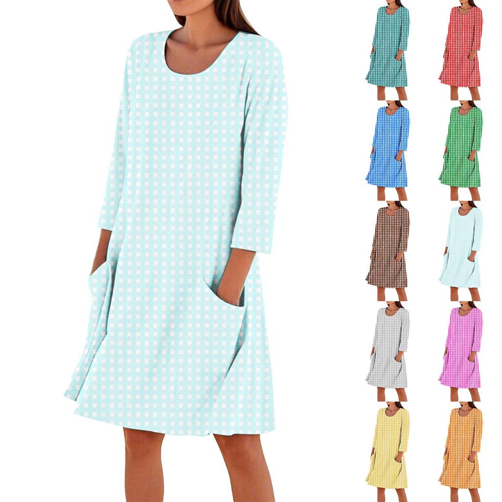 Женское однотонное модное свободное повседневное платье с рукавом три четверти Женское модное свободное повседневное платье с принтом в горошек и рукавом три четверти — купить товар онлайн с бесплатной доставкой до всему миру!