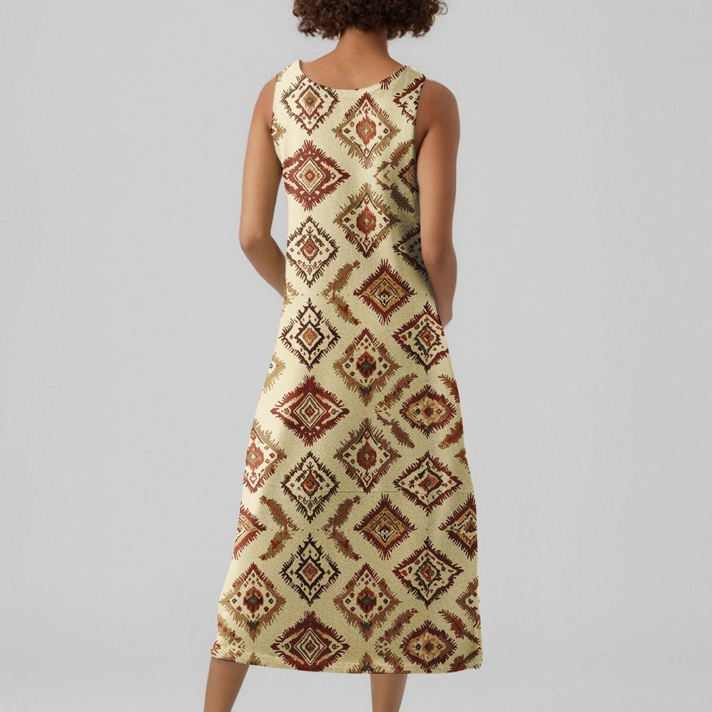 Женский повседневный длинный сарафан, летнее пляжное платье, круглый вырез, без рукавов, свободный сарафан