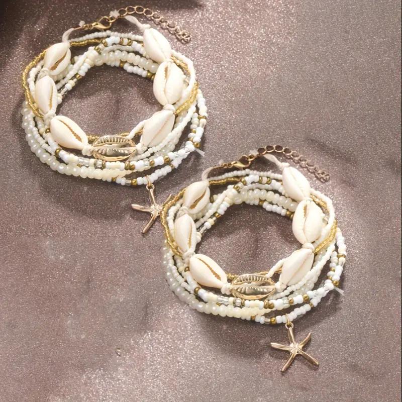 7/14 шт. комплект из богемных бусин для женщин, летние подвески в виде ракушек-звезд, многослойные пляжные браслеты для ног, повседневная одежда, ювелирные изделия