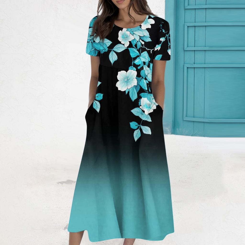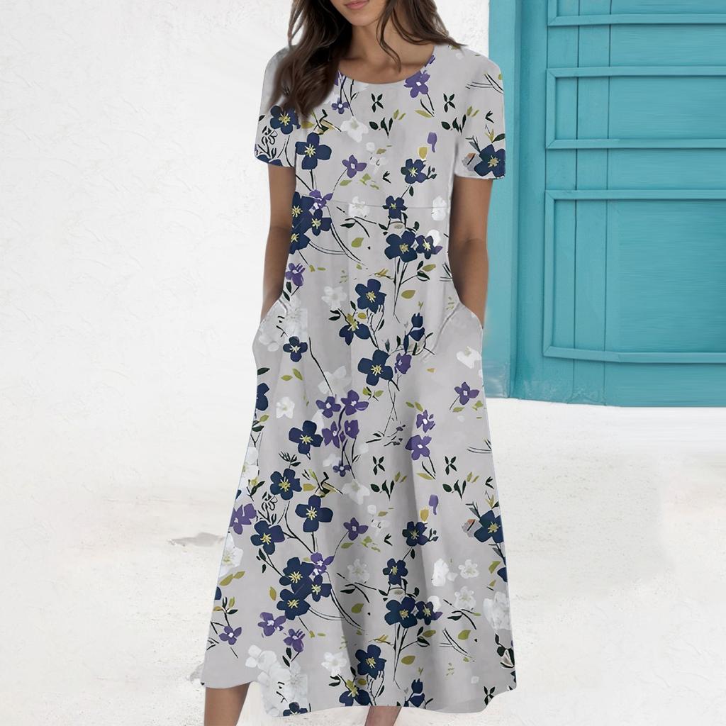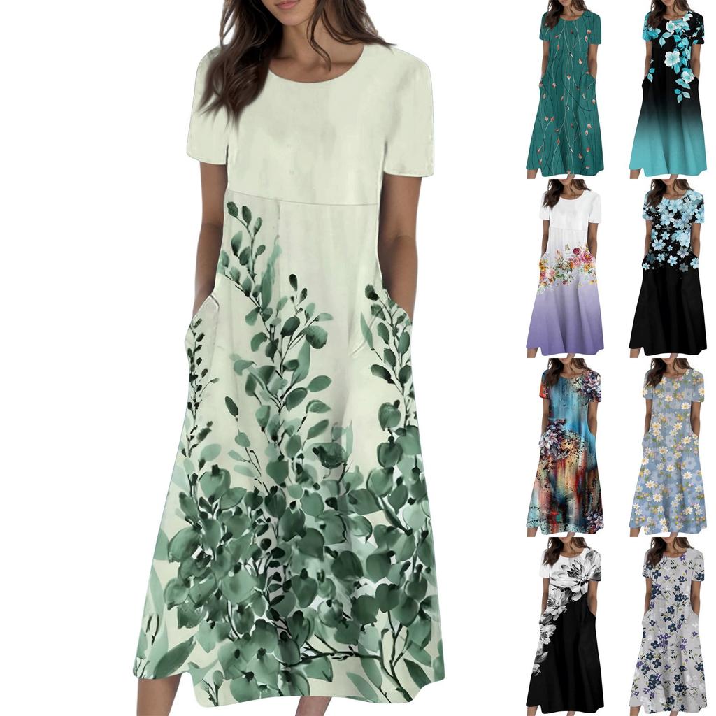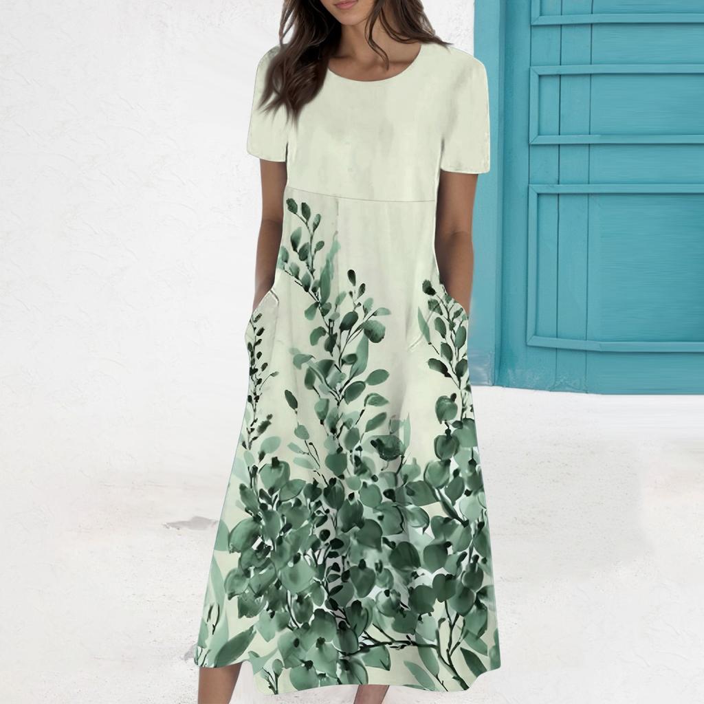 Функции:Женское платье с О-образным вырезом и короткими рукавами.