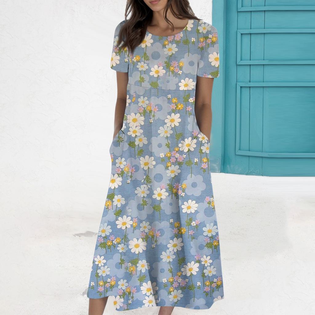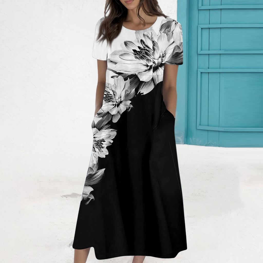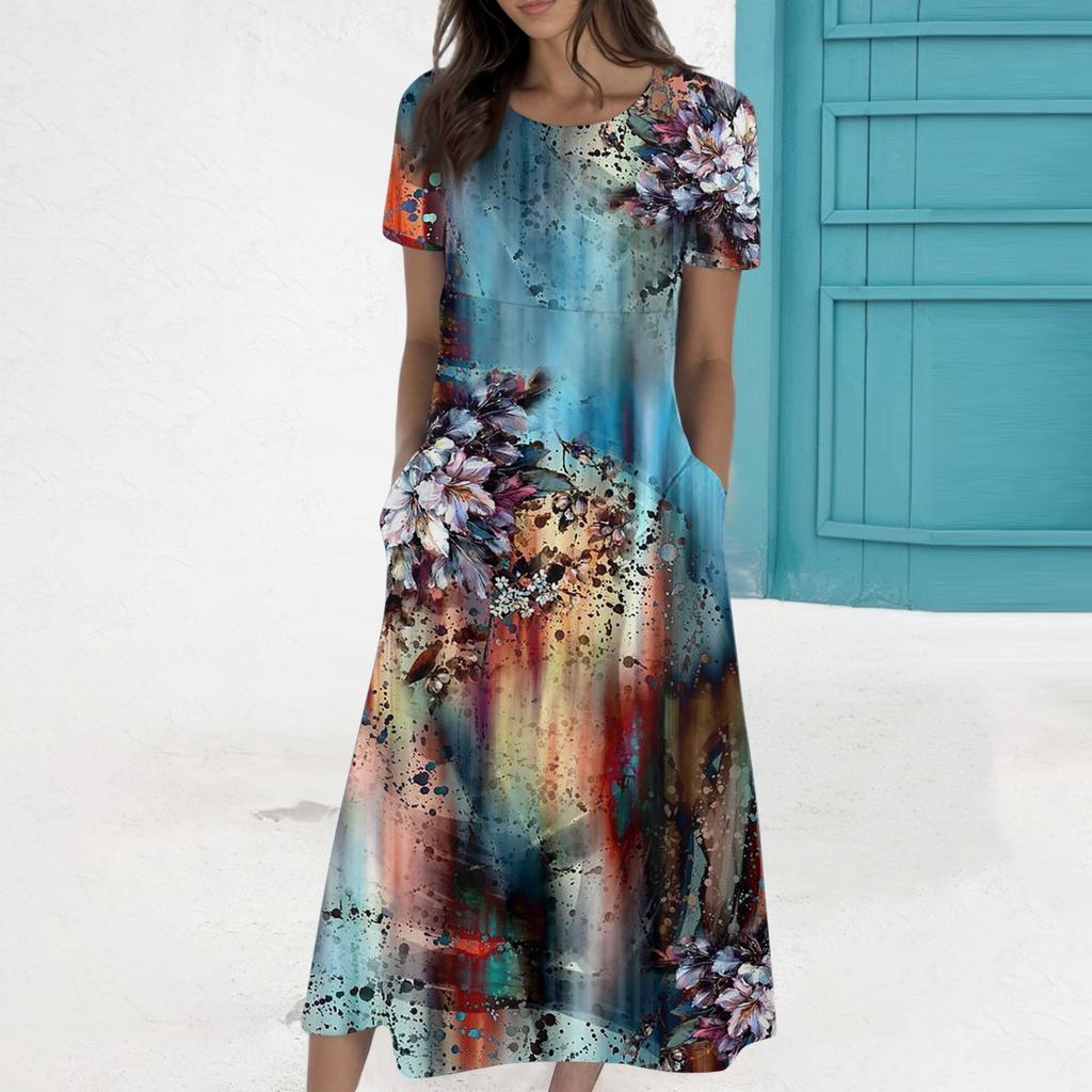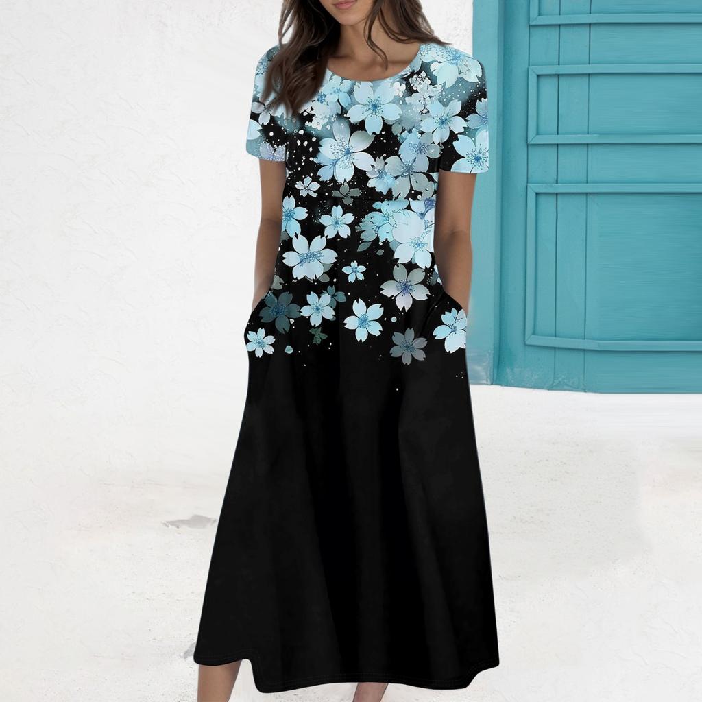 Функции:Женское платье с О-образным вырезом и короткими рукавами.