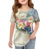 Детские футболки-складки, летние футболки с короткими рукавами и круглым воротником, с принтом цветов, пальто для отдыха