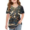 Детские футболки-складки, летние футболки с короткими рукавами и круглым воротником, с принтом цветов, пальто для отдыха