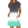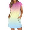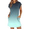Женское модное повседневное летнее платье с градиентным принтом, коротким рукавом, круглым вырезом и карманами