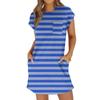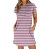Женское модное повседневное летнее платье с полосатым принтом, коротким рукавом, круглым вырезом и карманами