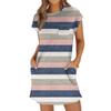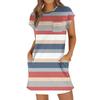 Женское модное повседневное летнее платье с полосатым принтом, коротким рукавом, круглым вырезом и карманами — купить товар онлайн с бесплатной доставкой до всему миру!