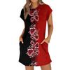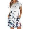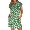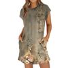 Женская мода повседневная летняя винтажная цветочная печать короткий рукав круглый вырез свободное платье с карманами